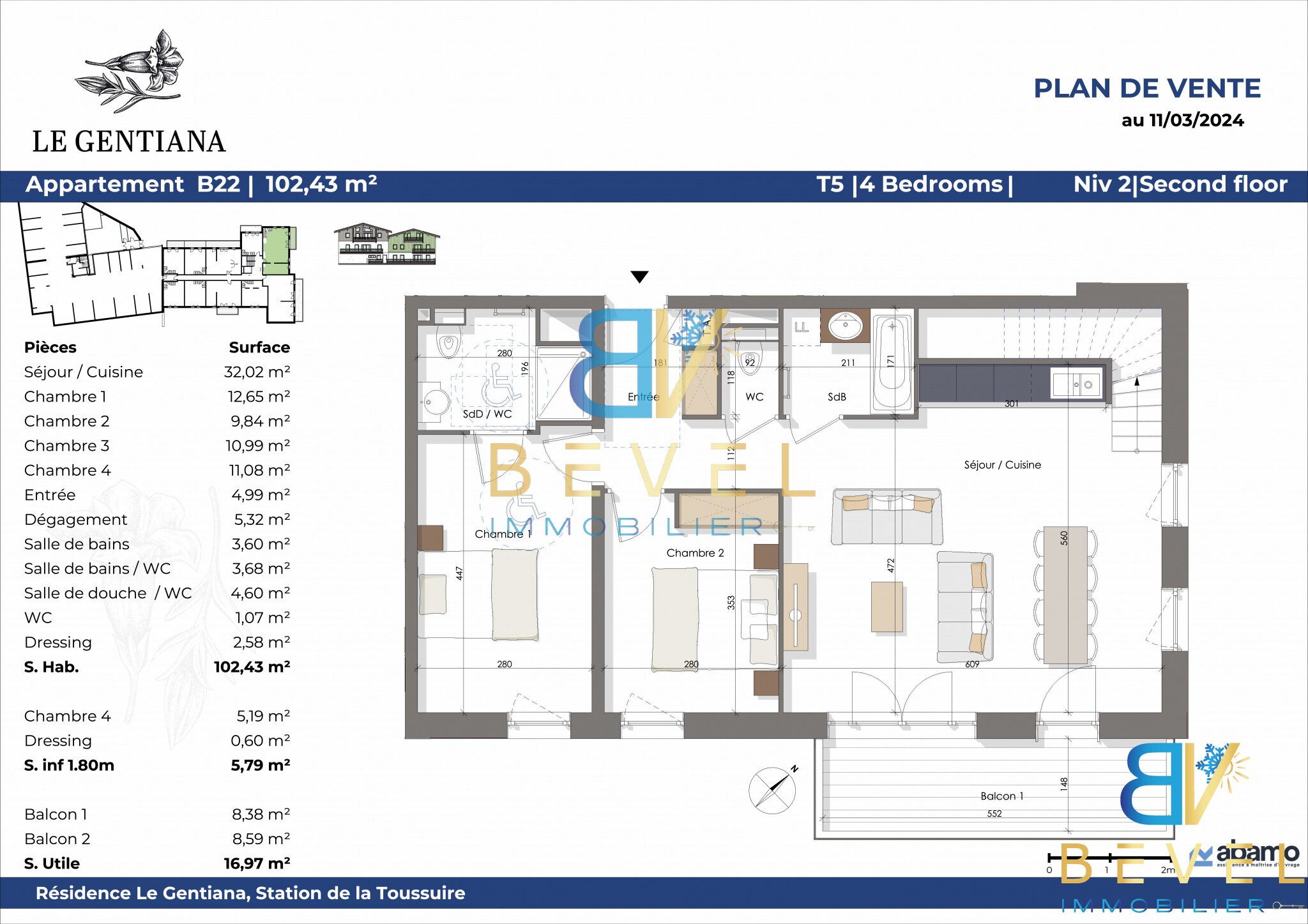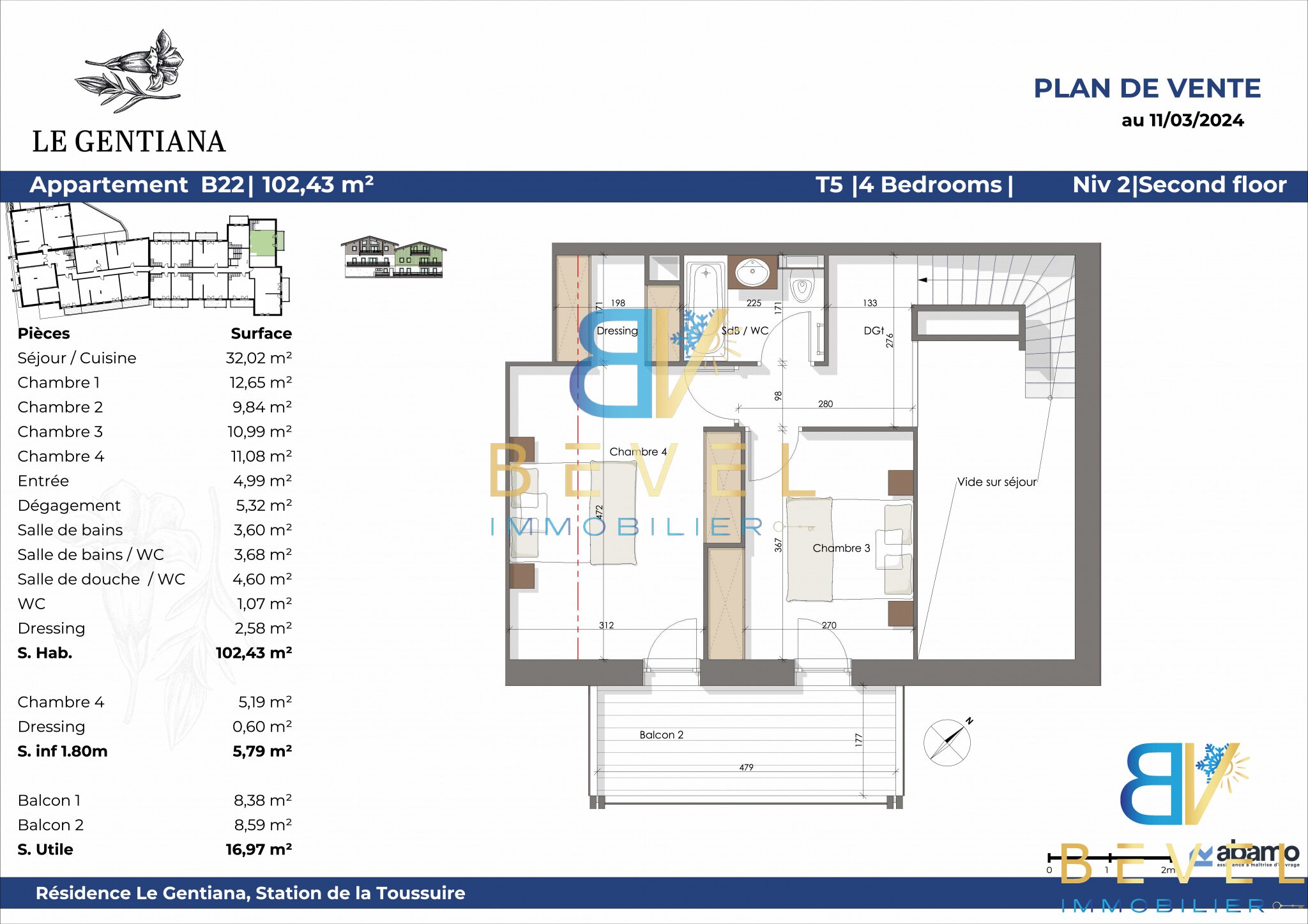 T5 PENTHOUSE 102,43 m2 - LA TOUSSUIRE - LE GENTIANA - BALCONS - GARAGE & PARKING - LOCAL A SKIS