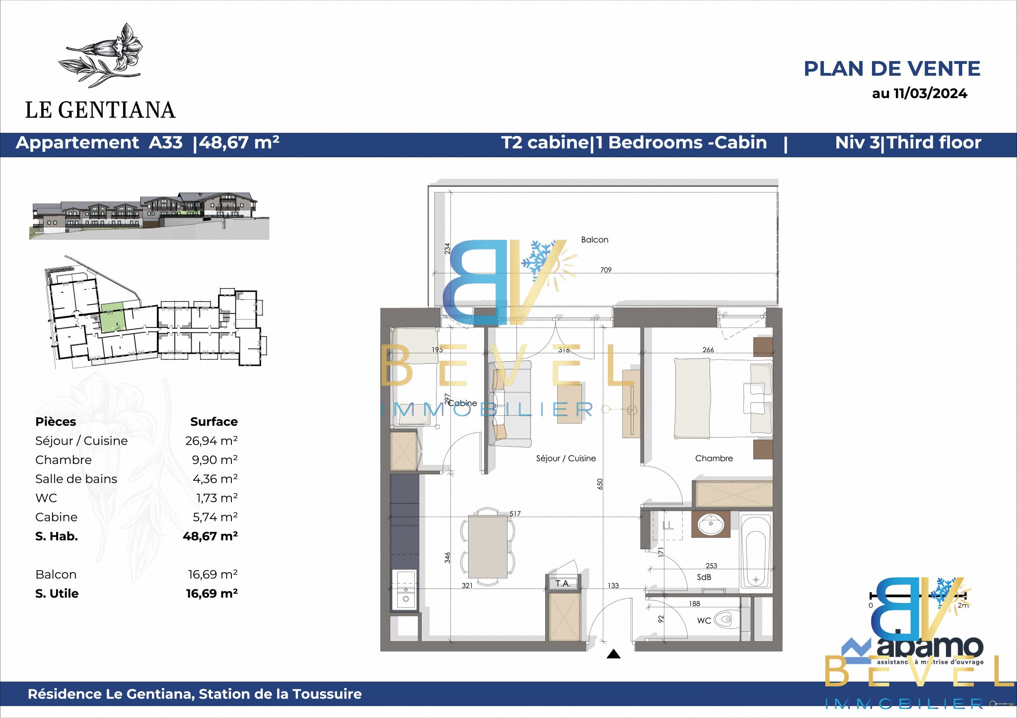 T2 Cabine 48,67m2 - LA TOUSSUIRE - LE GENTIANA - BALCON - GARAGE & PARKING - LOCAL A SKIS