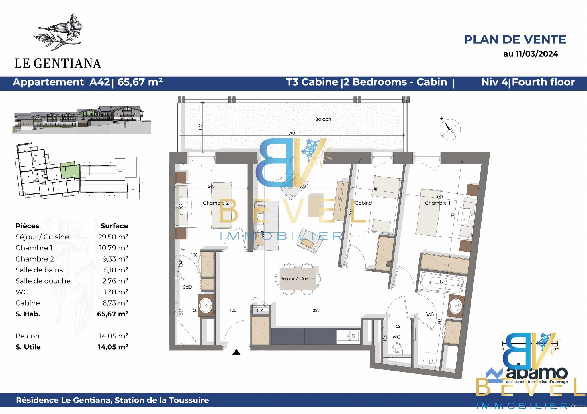 T3 Cabine 65,67m2 - LA TOUSSUIRE - LE GENTIANA - BALCON - GARAGE & PARKING - LOCAL A SKIS