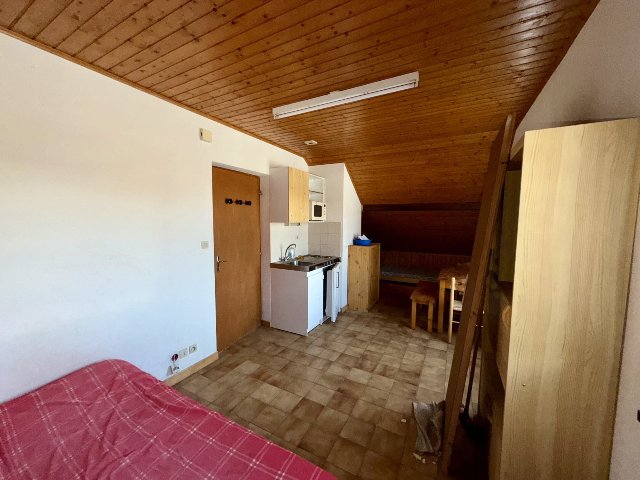 L’appartement dispose d’un balcon de plus de 4 m2, offrant un espace extérieur appréciable. Son orientation nord-est apporte une atmosphère tempérée, particulièrement recherchée en période estivale. Fonctionnel et facile d’entretien, ce studio répond parfaitement aux attentes d’un investissement locatif en station.